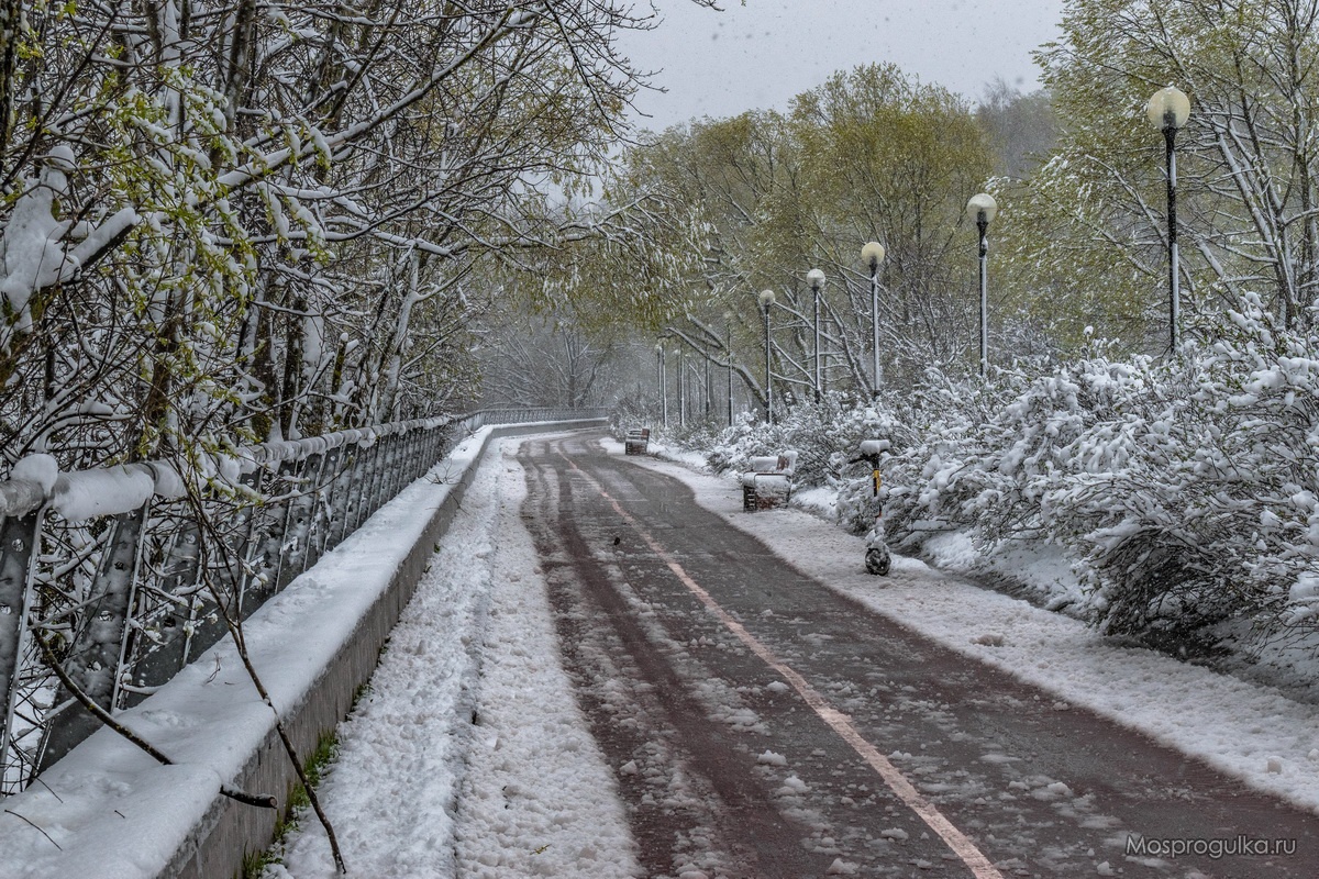 Вот и сейчас так же: на майские праздники обещают почти летнюю погоду, так что, видимо, нынешний снегопад - это последний залп зимы в этом году. И, соответственно, последний шанс погулять по снежку. Нескоро он снова выпадет!