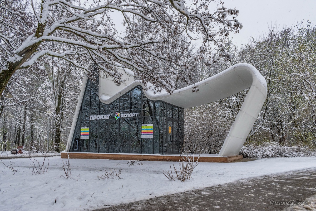 Кстати, с прошлого года в парке обновляют торговые павильоны. Новые павильоны выглядят очень красиво: они стилизованы под волну, и хотя физически они больше прежних, визуально это не ощущается, строения очень лёгкие и воздушные. На берегу Химкинского водохранилища такой дизайн павильонов определённо в тему.